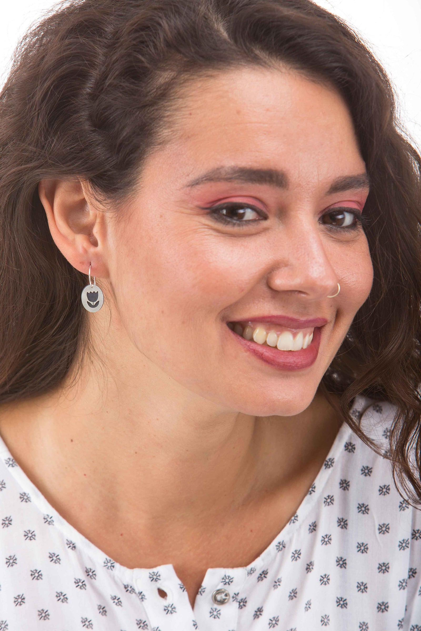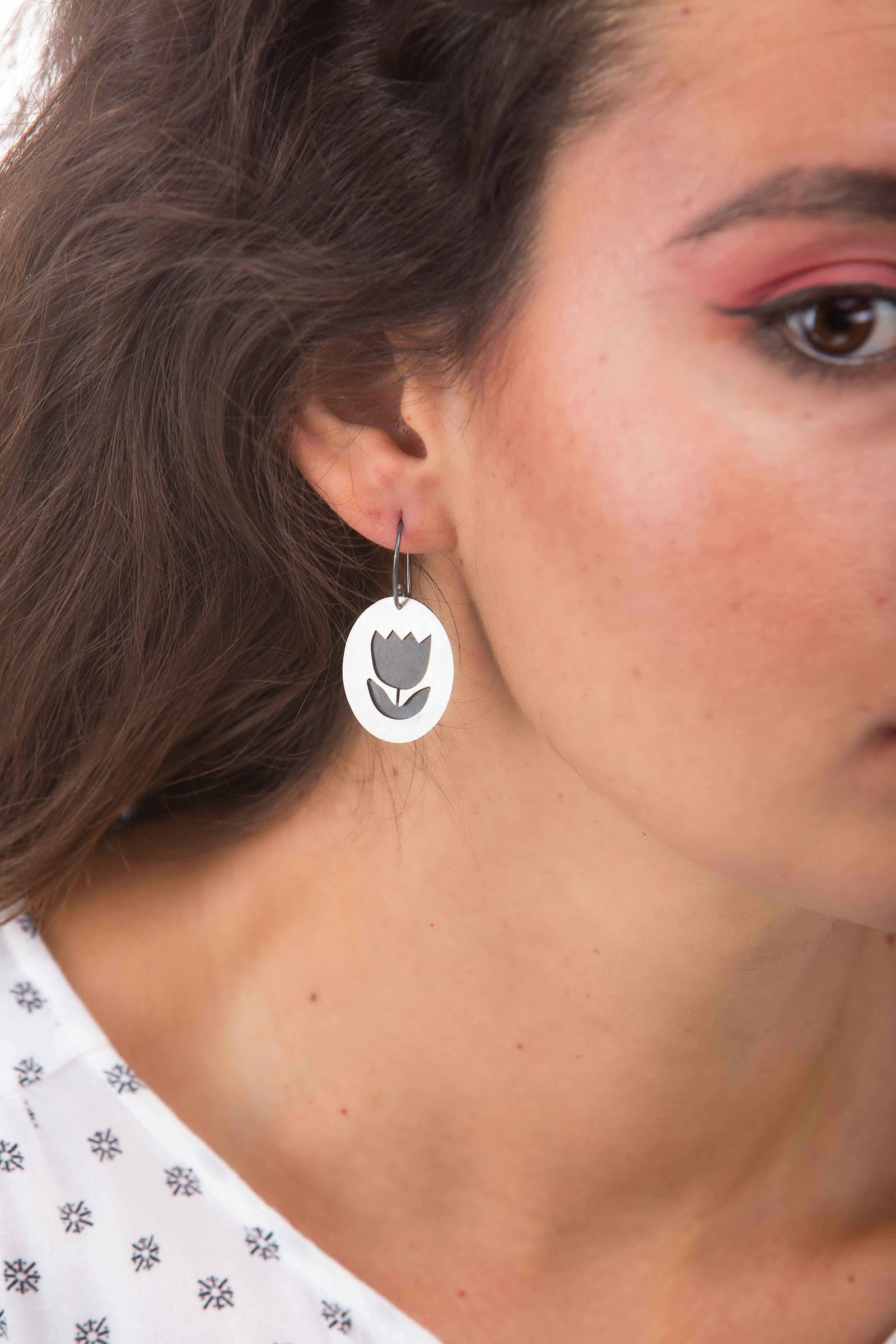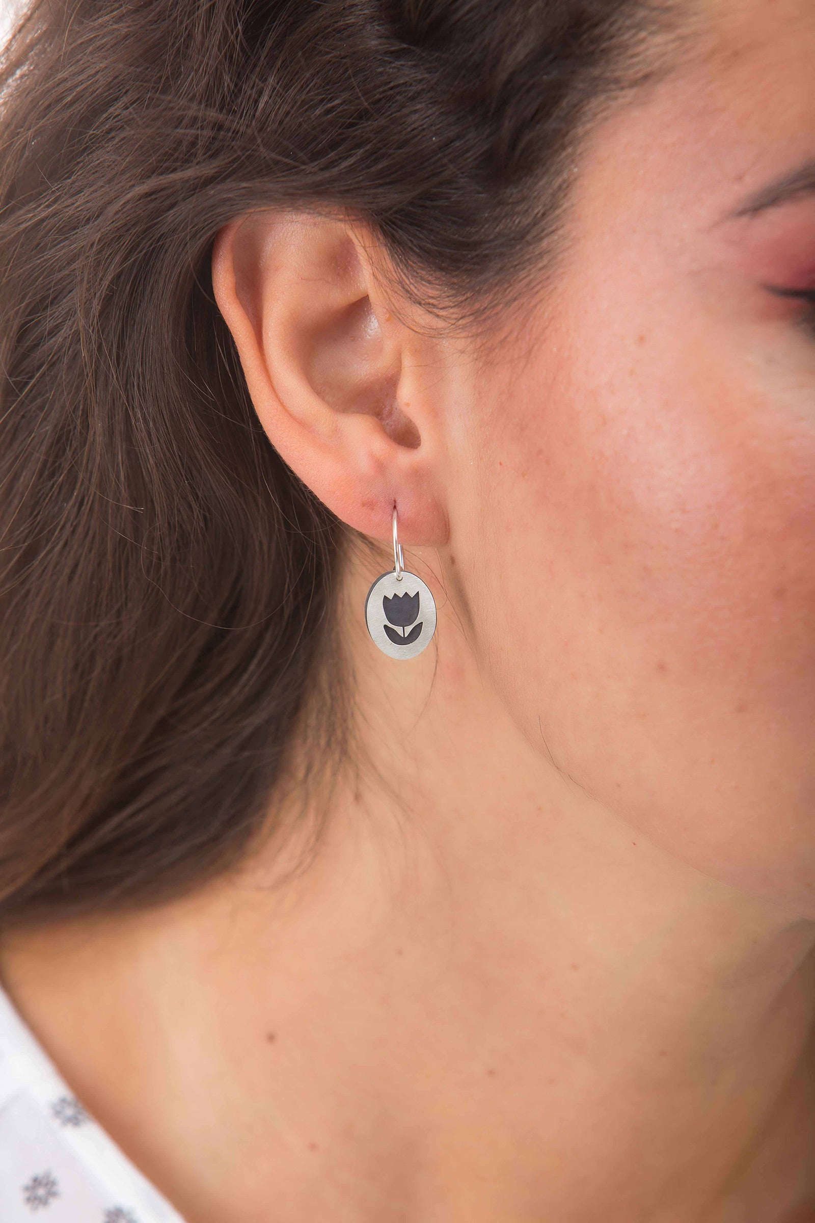 925 silver with silver oxidized, oval cut tulip earrings